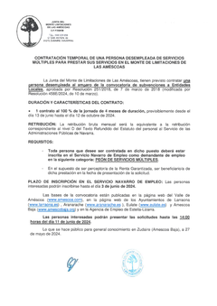 La Junta del Monte Limitaciones de Las Améscoas, tiene previsto contratar una persona desempleada al amparo de la convocatoria de subvenciones a Entidades Locales...Más información